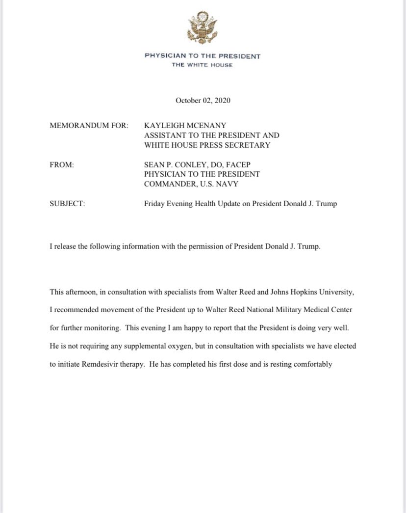 Judd Deere on Twitter: "Memorandum from President @realDonaldTrump?s Physician https://t.co/ujHUufQBln" / Twitter